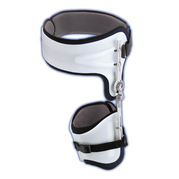 Hofteortose med flere indstillingsmuligheder: Rotationsindstilling i transversalplan, kontrol og indstilling i både fleksion/ekstension og abduktion/adduktion. Plastkonstruktion med stål/aluminium led. Passer både kvinder og mænd.